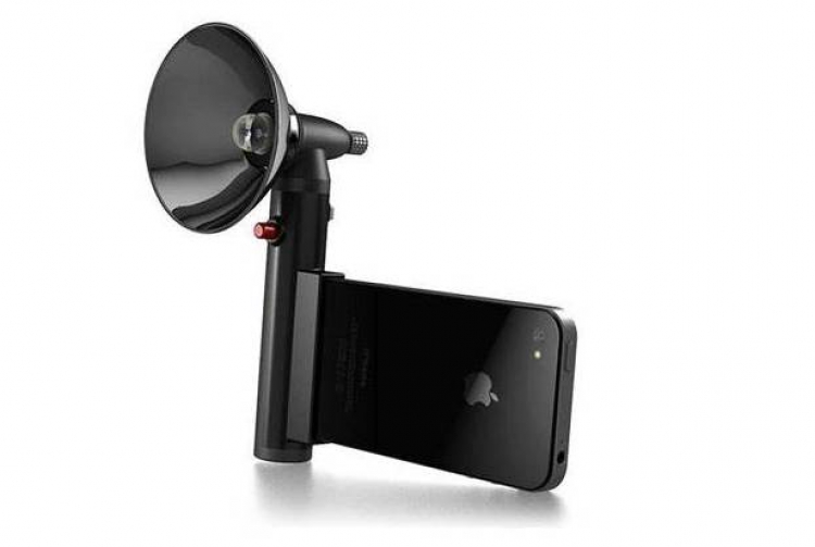 Eski moda görünümlü Paparazzo harici LED flaş, iPhone'un standart fotoğraf çekim yeteneklerini kat kat artırıyor.